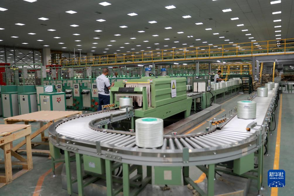 8月10日,在埃及苏伊士省的中埃·泰达苏伊士经贸合作区,员工在巨石埃及公司的玻璃纤维生产线上工作。新华社记者 隋先凯 摄