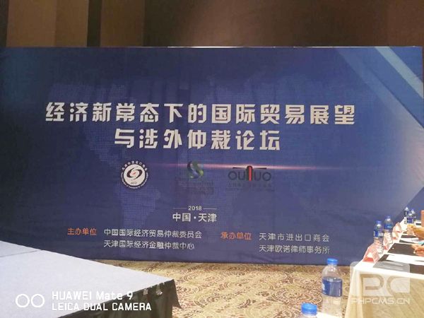 2018年9月18日中国仲裁周经济新常态下的国际贸易展望与涉外仲裁天津会场论坛在天津天津东凯悦酒店举行。本次论坛由天津市进出口商会和天津