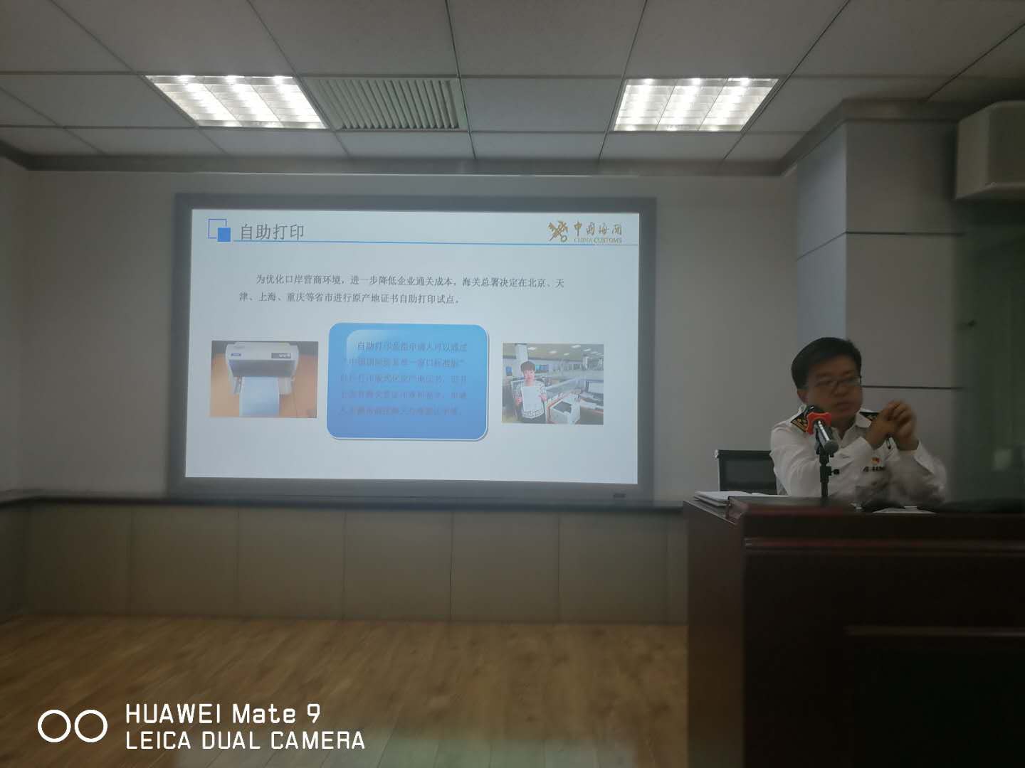 培训首先由天津海关赵海建老师讲解了“原产地证书”的基本概念,出口使用的证书的分类,海关申办证书的改革措施和办证地址。特别是向大家介绍了最新的海关政策—运行在“单一窗口”的证书自助打印系统,详细解释了企业在“单一窗口”备案和操作流程。特别提醒大家可能会遇到的问题。天津海关的张常年老师向大家做了“自由贸易区协定与通关管理”的宣讲,介绍了达成自贸协定的16个国家和地区,正在谈判的11个国家,和准备启动谈判的11个国家。想大家通报天津外贸企业利用自贸协定税率的比例还比较低,鼓励企业充分利用自贸区协定关税给贸易企业带来的红利,扩大贸易,降低成本。天津永信世通供应链管理咨询有限公司关务总监王岩为大家现场演示了在“单一窗口”如何操作原产地证书自助打印的流程。