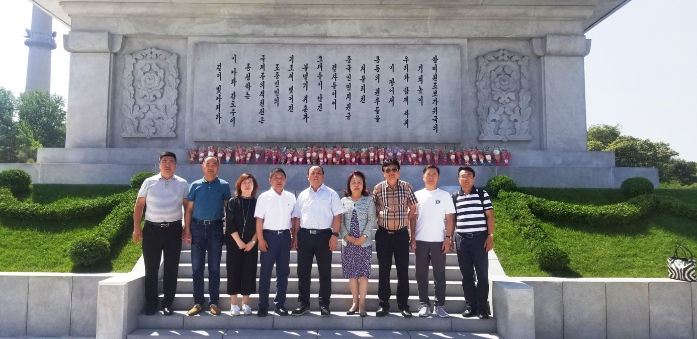 在朝鲜考察期间,商会考察团一行还瞻仰了位于牡丹峰山麓的中朝友谊塔,拜谒了位于三八线附近的开城中国人民志愿军烈士陵园,向为保家卫国而献出宝贵生命的长眠在朝鲜志愿军英烈敬献鲜花、默哀致敬,开展了一场生动的主题教育活动。考察团一行还来到万寿台并向朝鲜人民的伟大领袖塑像敬献鲜花;参观了金日成万景台故居、板门店军事分界线、主体思想塔、国际友谊展览馆和凯旋门;考察了青山农场、西海水闸和一家汽水工厂。