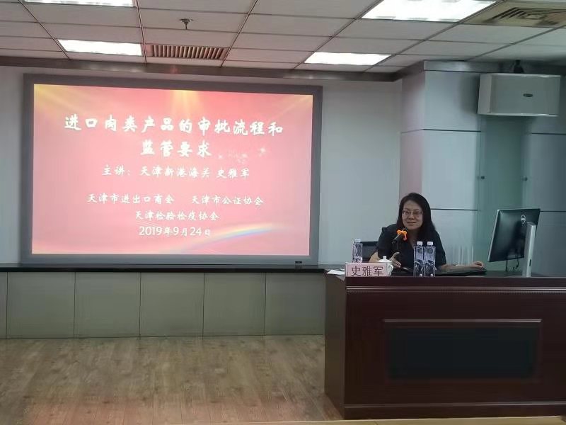 为帮助广大肉类进出口企业了解海关对进口肉类产品的监管和查验要求,保证冻品货物及时通关,2019年9月24日下午,进出口商会联合天津市检验检疫协会、天津市公证协会共同举办了“冷冻肉品进口管理规范”培训。