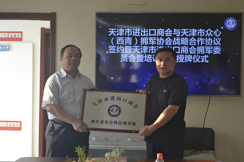 天津市进出口商会与天津市众心(西青)拥军协会战略合作协议签约仪式暨商会拥军专委会暨培训基地授牌仪式成功举行