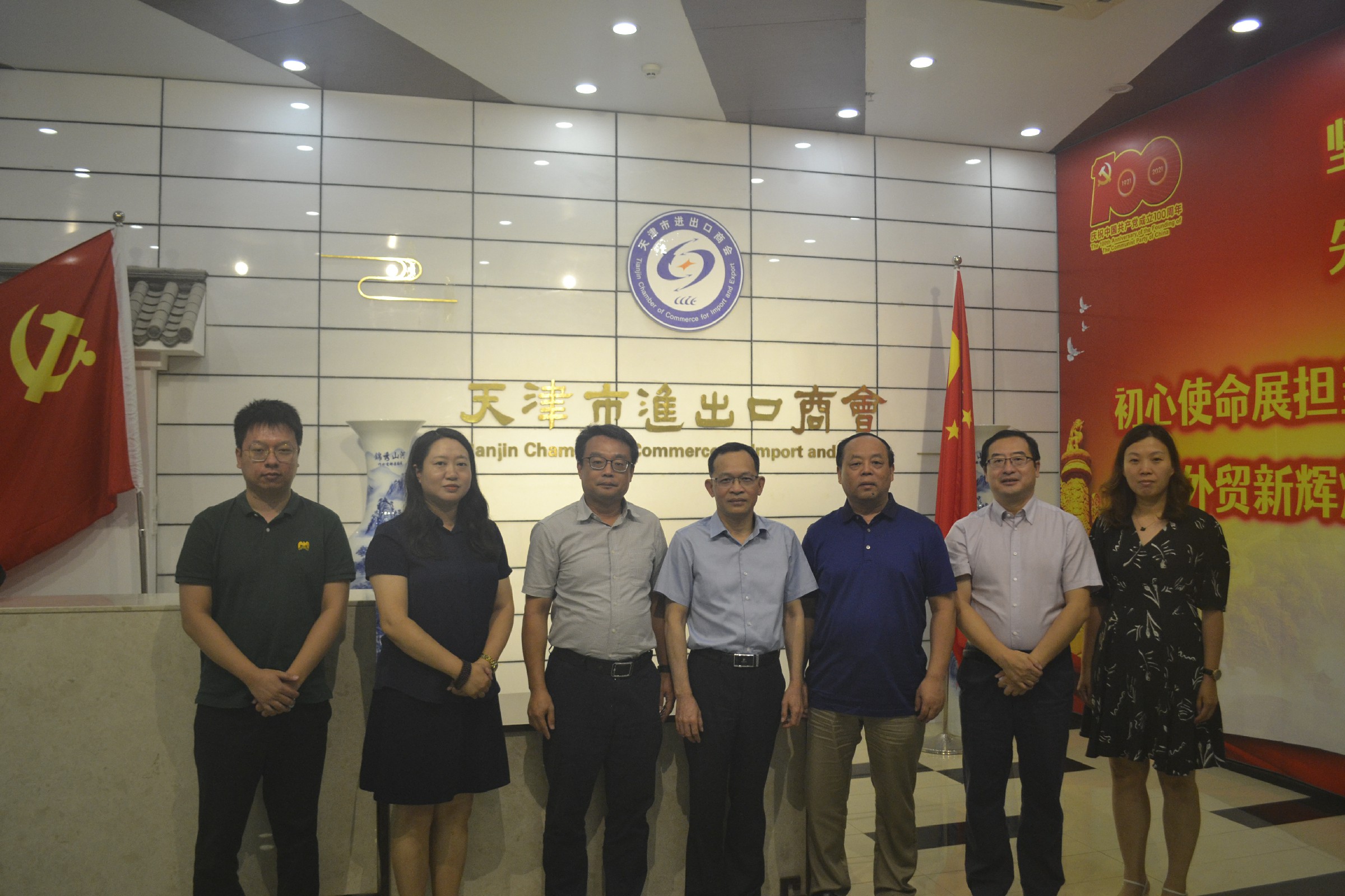 2021年8月17日,中国出口信用保险公司天津公司韦少敏总经理、孙汉鲲副总经理一行4人到访商会,就贯彻落实中央和天津关于加快外贸高质量发展、加快构建外贸新发展格局、怎样运用各自优势开展深度合作、全面启动服务外贸新模式等进行深入研究与探讨。李胜利和商会秘书长等参加座谈。