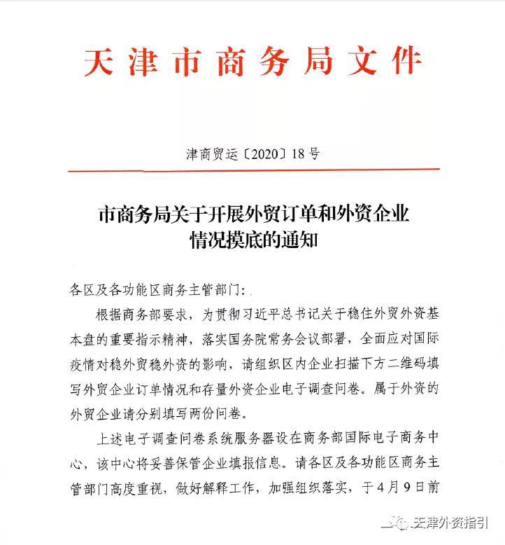 市商务局关于开展外贸订单和外资企业情况摸底的通知