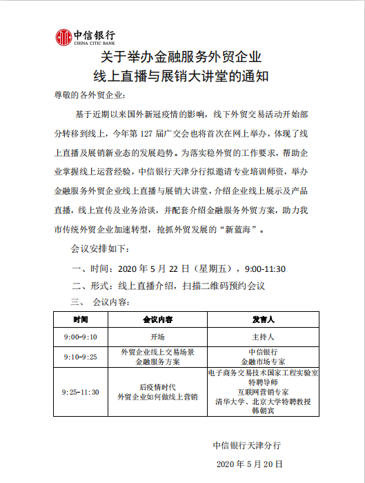 关于举办金融服务外贸企业线上直播与展销大讲堂的通知